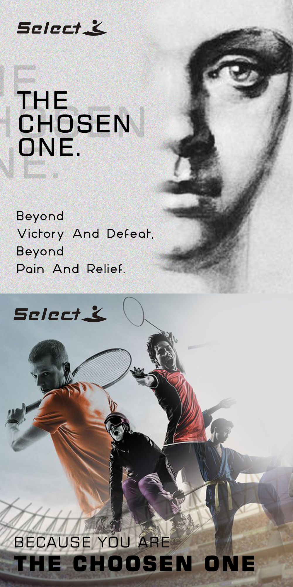 Product display of a sports brand "select sports wear". Social media post for daily engagement.